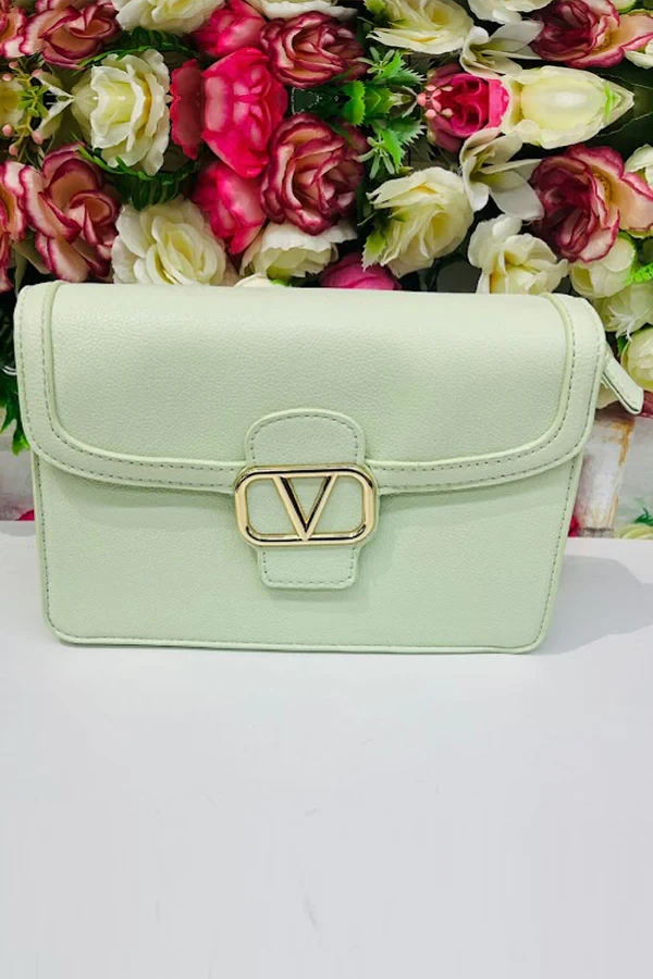 Refresh your accessory collection with this elegant mint green faux leather clutch bag, designed to add a soft, sophisticated touch to any outfit. Crafted from high-quality textured faux leather, this bag offers a smooth finish with a structured silhouette that holds its shape beautifully. The soothing mint green shade makes it perfect for spring, summer, and special occasions. Featuring a secure front flap with a stylish gold-tone V-lock closure, this clutch keeps your essentials safe while adding a luxurious accent. The compact yet practical interior provides enough space for your phone, wallet, keys, and makeup essentials. Designed for versatility, it can be worn as a crossbody using the detachable strap or carried as a classic clutch. Ideal for weddings, parties, dinners, or everyday elegance, this bag effortlessly blends fashion and function.