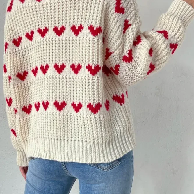 Romantic Charm: Elevate Valentine's style with our Heart Jacquard Sweater, blending love and elegance.