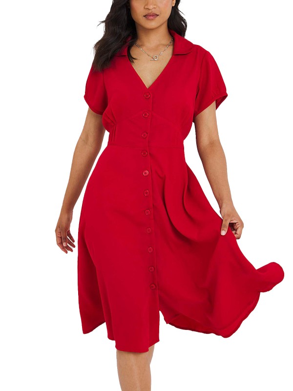 A head-turning red shirt dress is the best way to make a statement this summer. This button-through shirt dress is bright, beautiful and bursting with personality. In a gorgeous textured fabric with pretty pin tucks to accentuate your shape, with a full skirt and open collar, it's so easy to style. Just add a pair of kitten heels for true retro glamour. Length 105cm/44in.