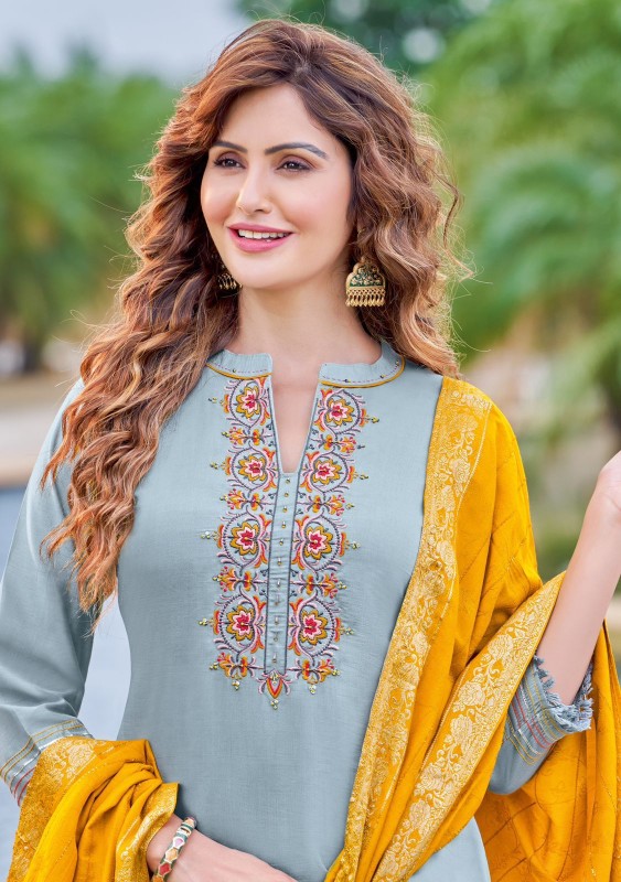Fabric Details Top : Viscose Silk With Soft Inner Work : Embroidery & Hand work Pant : * Viscose Silk* Dupatta : *Jequard Viscose*