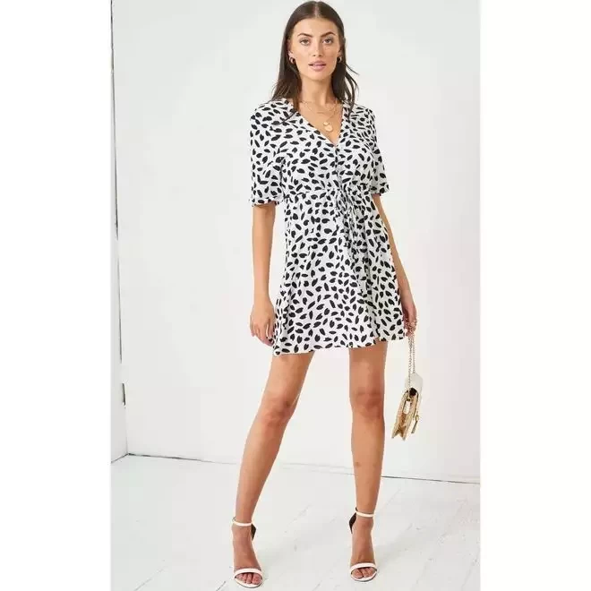 WHITE LEOPARD PRINT SHORT SLEEVE MIDI SMOCK DRESS
