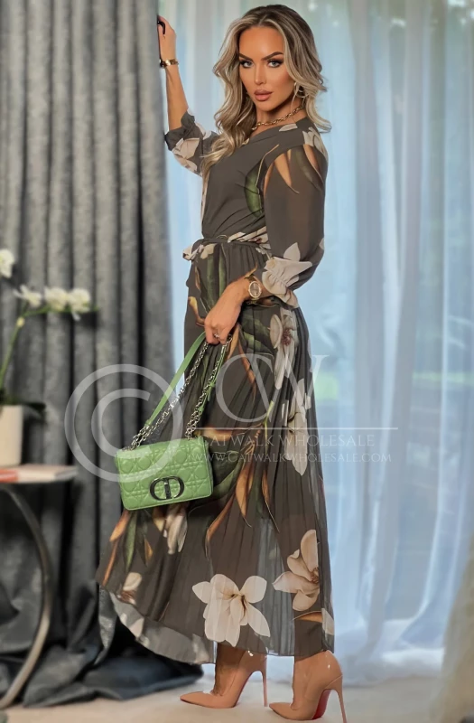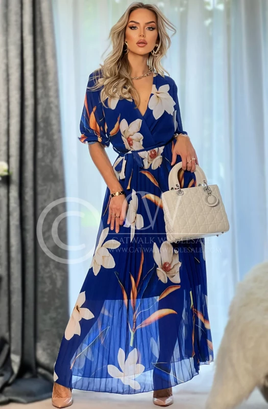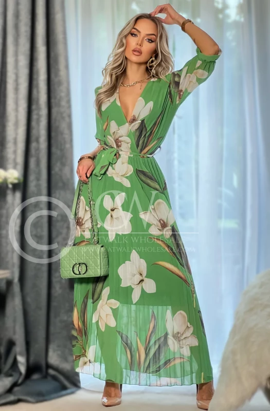 Low cut open front wrap 'V' neckline with elasticated waistband