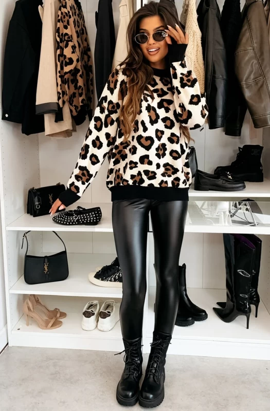 Indulge in the ultimate combination of comfort and style with our Zorena Leopard Printed Jumper Sweater Top. Now available in different colours. With its all-over scattered animal leopard print and ribbed color contrast detail, this jumper top offers a unique touch to your everyday casual wear. The crew neckline and long sleeves adds a cozy feel, while the soft and stretchy material is complimented by a thin soft fleece under lining. Available in approx. sizes of: S (UK 8), M (UK 10) L (UK 12), with an approx. length of: 27"(69cm), top is perfect for any body type. Made beautifully in Italy from a high-quality blend of 100% Polyester, 95% Cotton and 5% Elastane. Elevate your style game with this jumper top - a must-have for your wardrobe.
